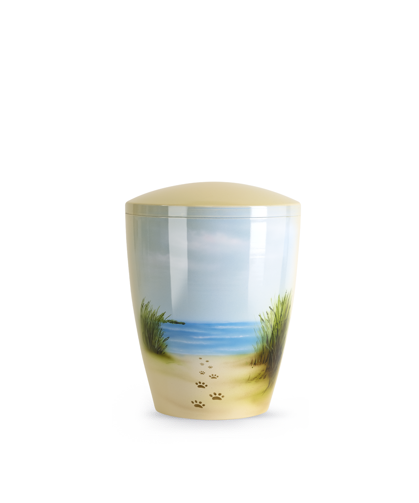 Jede Urne ist daher ein UNIKAT. Sie können diese Urne auch noch mit dem Namen/den Daten Ihres Haustieres veredeln.