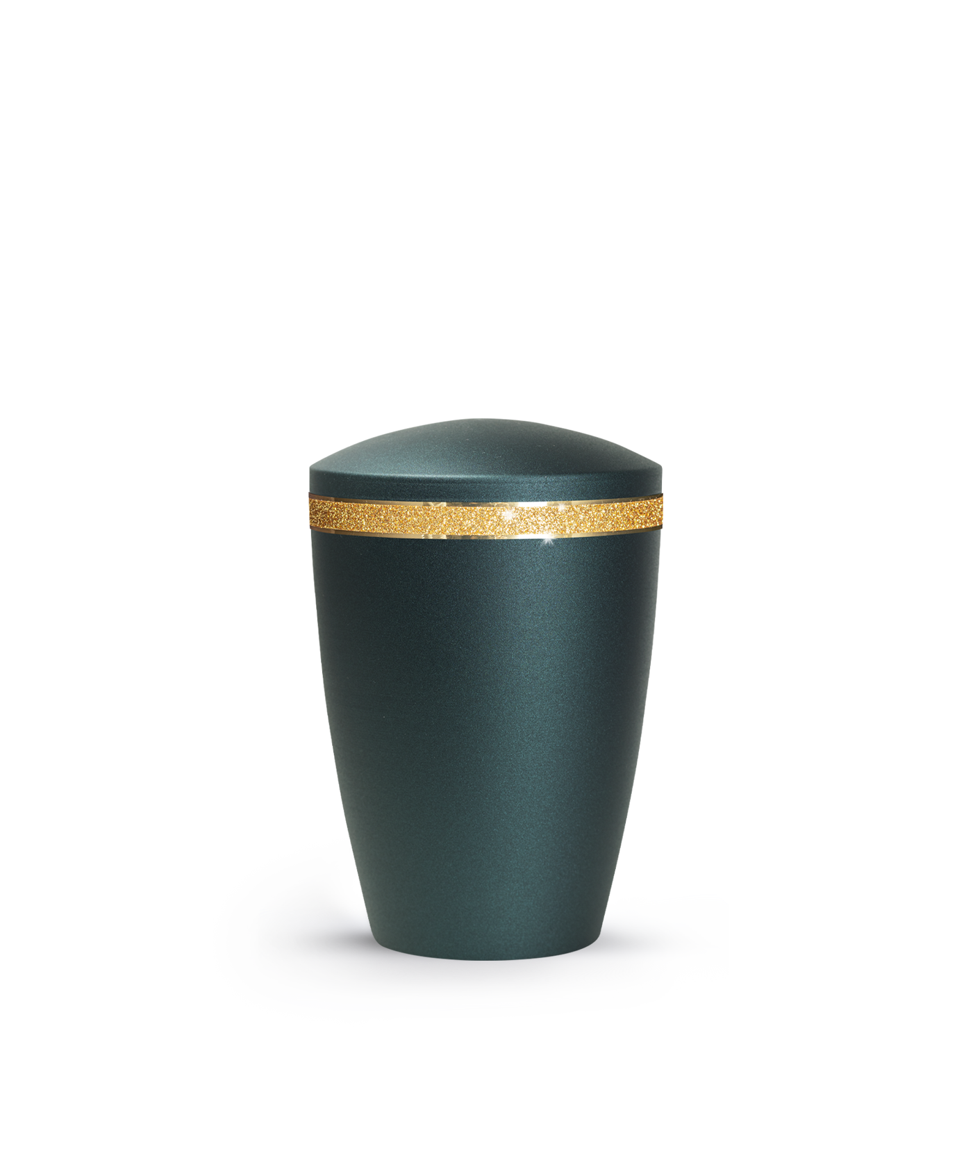 Sie sind mit einem umlaufenden Goldglitterband veredelt. Die Urne gibt es in 3 Größen (0,5 / 1,5 / 2,8 Liter)
