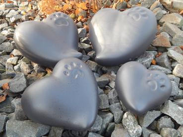 Herzförmige Keramik-Außenbereichsurne mit einer Pfote. Witterungsbeständig und Frostsicher ! Jedes Stück ist ein Unikat. In grau ist es das letzte Stück (Auslaufmodell)