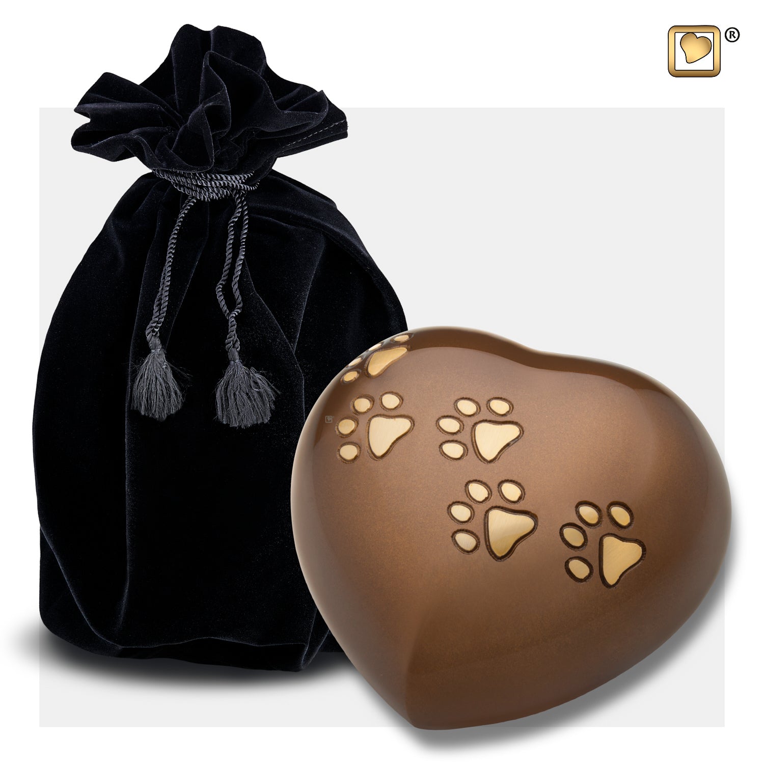 HERZ-URNE braun mit Pfötchen (0,35 ltr.)