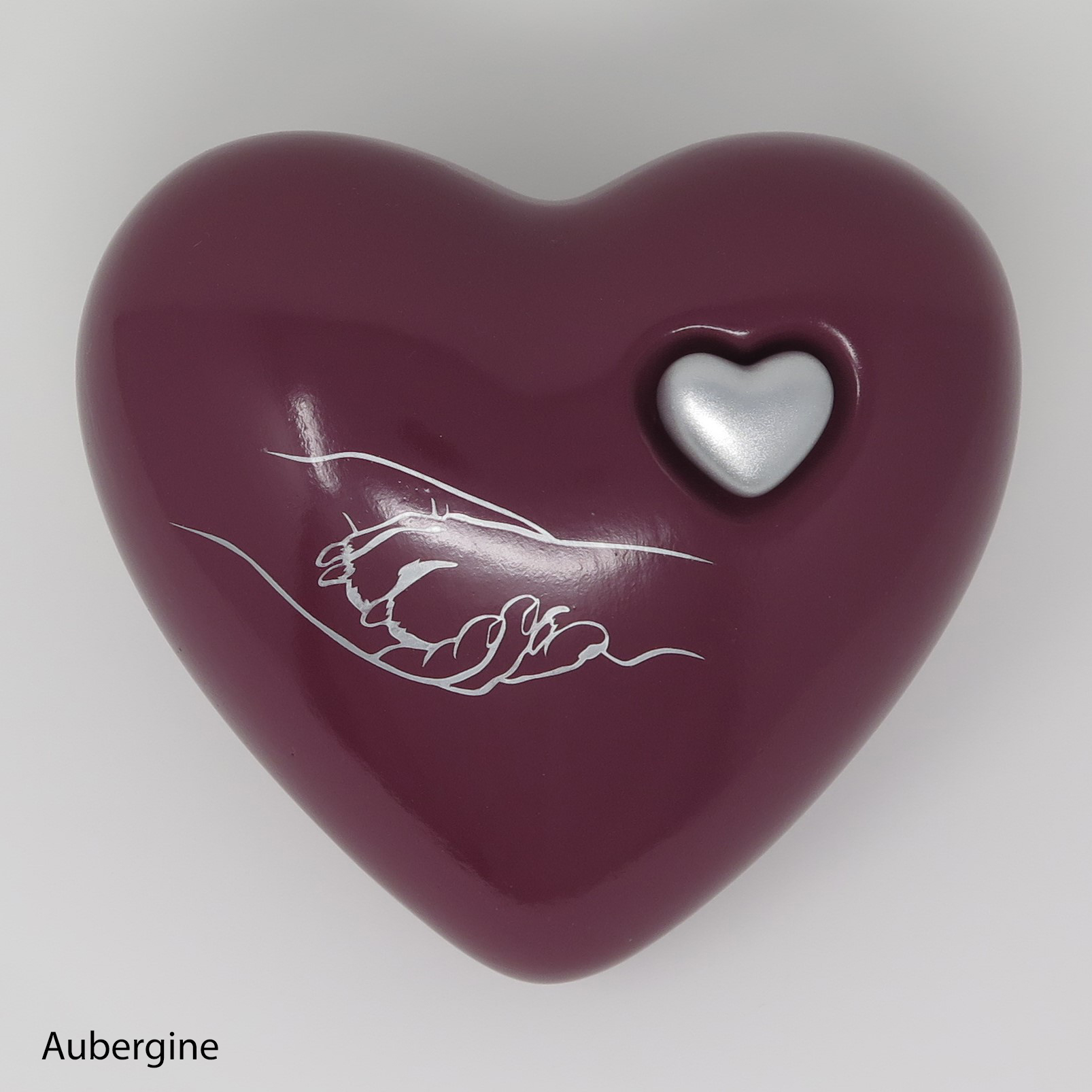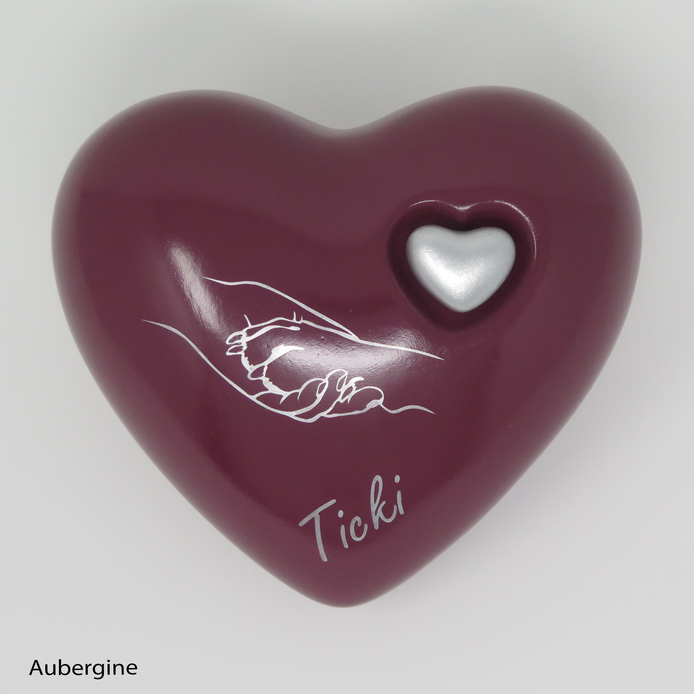 Das kleine Herz (rechts auf der Urne) ist ein "Kuschelherz", es ist ebenfalls aus Keramik und in vielen Farben bestellbar (siehe Bild mit Farbtabelle).