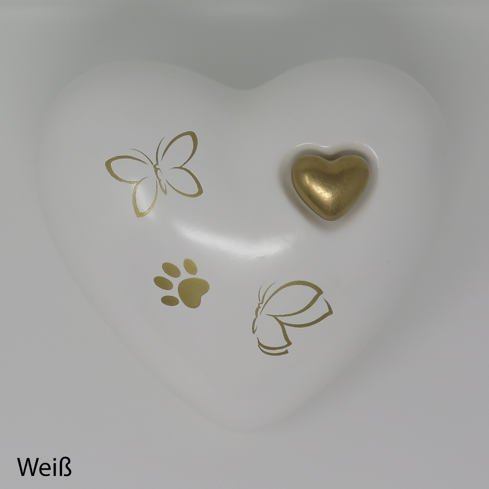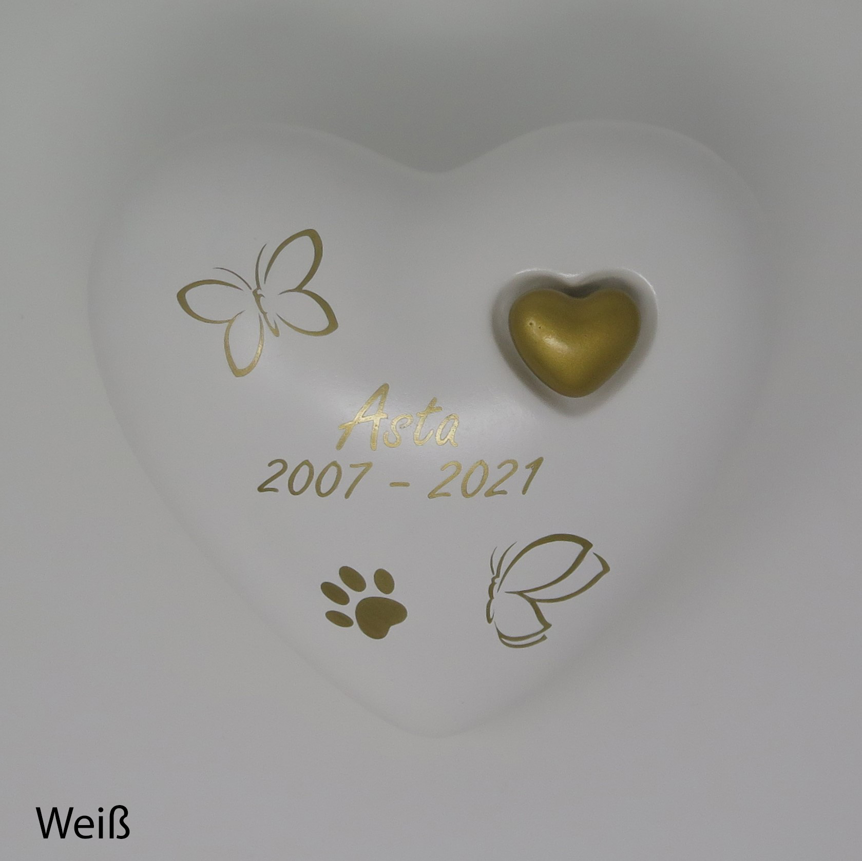 Das kleine Herz (rechts auf der Urne) ist ein "Kuschelherz", es ist ebenfalls aus Keramik und in vielen Farben bestellbar (siehe Bild mit Farbtabelle).