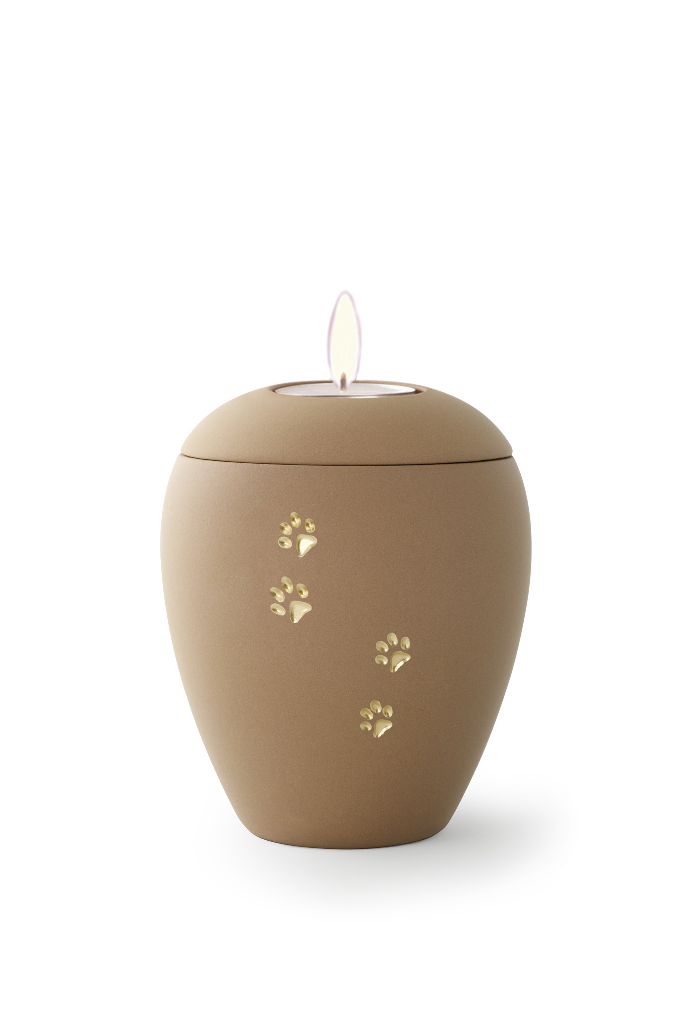 Siena Braun mit 4 goldenen Relief-Pfötchen & Gedenklichteinsatz (0,5 ltr.)