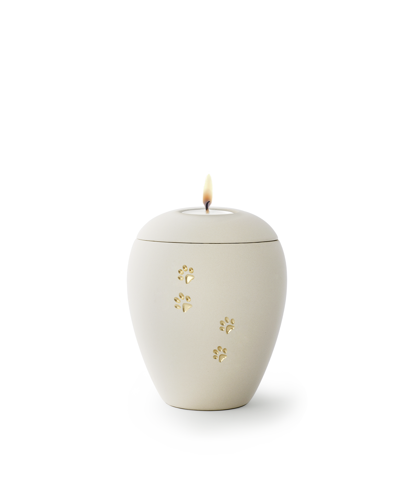 Siena Creme mit 4 goldenen Relief-Pfötchen & Gedenklichteinsatz (0,5 ltr)
