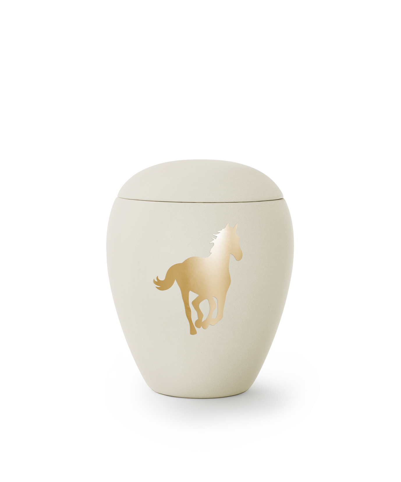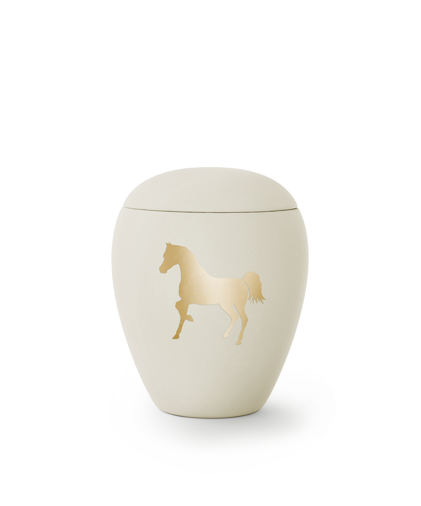 Urne creme mit erhabenen goldenen Pferderelief (1,5 ltr.)